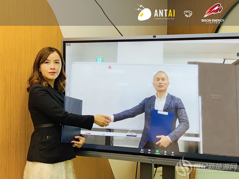 12月9日下午,Bison Energy Group與安泰新能源“云簽約”儀式召開。Bison Energy Group代表取締役社長張恒波先生和安泰新能源總裁黃麗琴女士隔空握手,簽訂了2021年全球戰略合作協議。