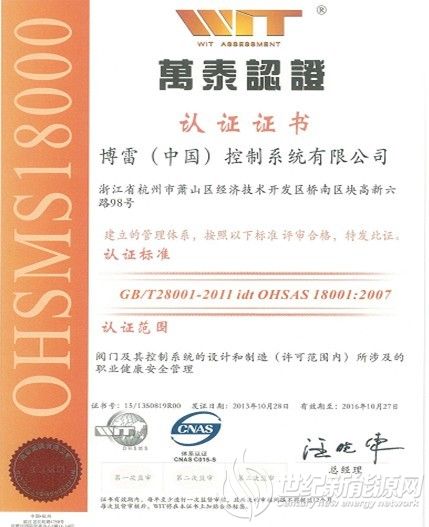 | 發證機構: | 英國標準協會(BSI)、挪威船級社(DNV)等13個組織 | 發證時間 : | 2013-10-28 |