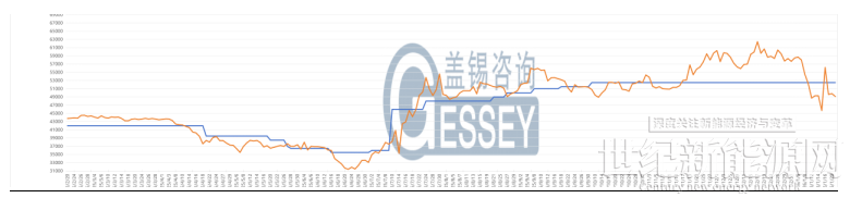 今日硅料價格整體維穩,N型料主流價格在50-56元/公斤,均價52.5元/公斤。N型顆粒硅主流價格在47-51元/公斤,均價50元/公斤。國產復投特級硅料主流價格在36-44元/公斤,均價43.5元/公斤,國產致密特級硅料主流價格在35-43元/公斤,均價42.5元/公斤。全球多晶硅料主流價格在19-22元/公斤,均價20元/公斤。