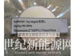 銀靶(Ag)規格:圓靶、板靶等,純度: 99.9999%;密度: 10.4970g/cm3;熔點: 961℃
