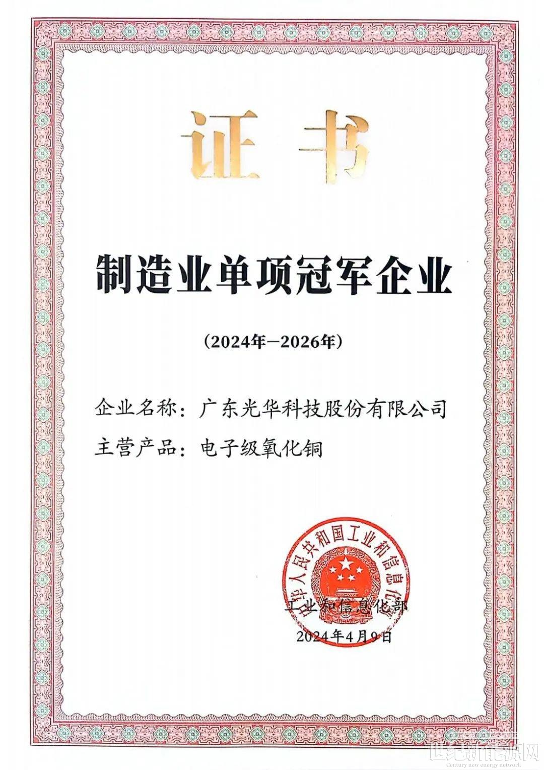 光華氧化銅:國家單項(xiàng)冠軍 引領(lǐng)高端應(yīng)用