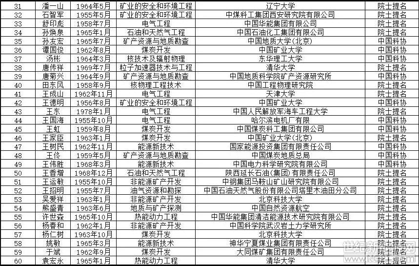 以下為華夏能源網整理的能源與礦業工程學部69名候選人名單: