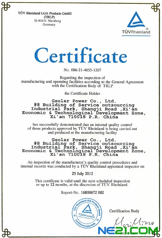 陜西眾森電能科技有限公司多年來一直置身于客戶的角度,秉承“誠信經營、技術領先、精益求精、合作共贏”的理念,不斷進行產品技術更新。是國內唯一同時擁有TUV/CE認證的設備廠家。早在2008年,眾森的IV測試設備就率先取得了CE認證,2009年又取得了TUV認證,2012年取得臺灣工研院AAA認證, EL檢測儀在2011年也取得了TUV證書和專利證書。客戶覆蓋德國、意大利、法國、日本、臺灣、美國等多個發達國家。