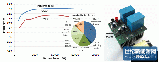圖 3. 48kHz 時的效率和驅動損耗,以及原型圖
