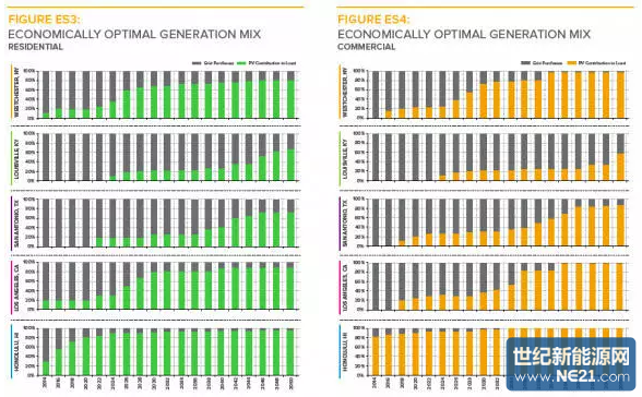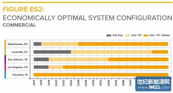運用HOMER Energy的建模軟件以及美國能源信息署的數據,新報告對單純依靠電網、電網+光伏、電網+光伏+儲能3種模式進行了模擬,根據系統的均化發電成本,確定一定時期內成本最低的技術選擇。