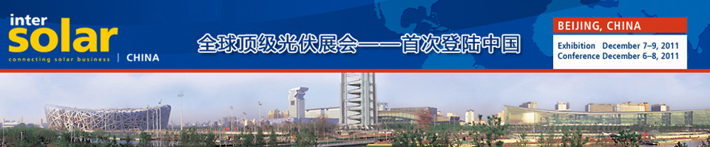 Intersolar China 2011 中國展將于2011年12月7日至9日舉行,延續“Intersolar”系列展覽的成功,包括世界太陽能行業領先的展覽系列。在北京舉行的 Intersolar 中國展,是該系列展的第四站,其它包括在慕尼黑的 Intersolar 歐洲展,在舊金山的 Intersolar 北美展和在孟買的 Intersolar 印度展。Intersolar 展示了太陽能發電的所有領域以及整個產品供應鏈 -- 從產品的配送到項目開發 -- 包括原材料,生產技術,太陽能電池,光伏模塊,系統技術和零配件。